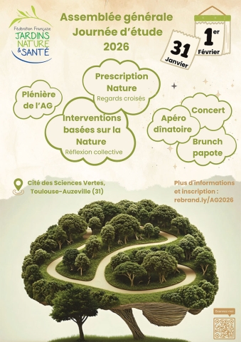 A l'occasion de la tenue de leur assemblée générale, les membres du Conseil d’Administration de la FFJNS (Fédération Française Jardins, Nature & Santé organisent une journée d’étude à la cité des sciences vertes de Toulouse-Auzeville, le 31 janvier prochain.